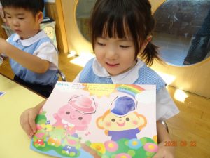 今後も、ハサミを使ってさまざまな製作遊びにチャレンジしていきます。