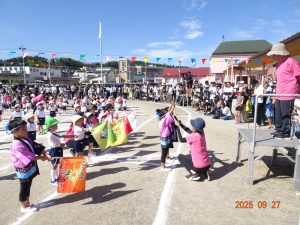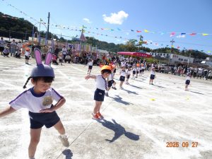 この運動会で培った能力の一つ『最後まであきらめず頑張る力』は今後のマラソン大会やなわとび大会に活かし、もう一つの能力『表現力』は今後のお遊戯会や演奏会に活かしていきたいと思います。