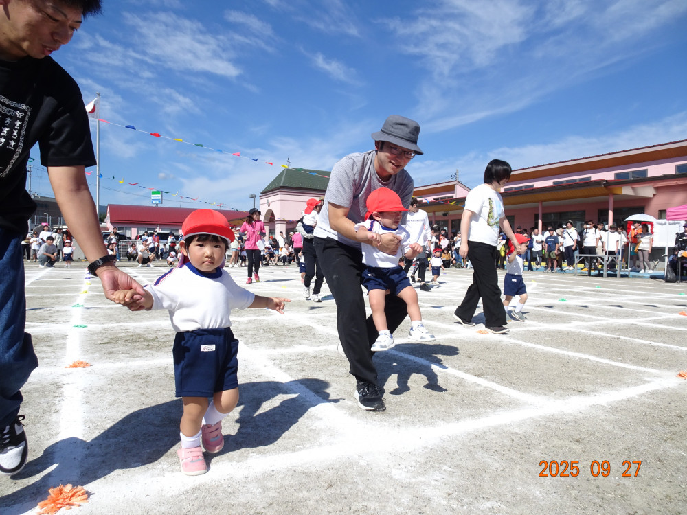 プログラム② 0歳児クラスこうめ組と1歳児クラスうめ組の「親子かけっこ」約14m走