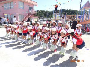 また、保護者の皆様には運動会を開催するにあたり、事前に園庭の草むしりの奉仕活動を行っていただき感謝に堪えません。本当にありがとうございました。