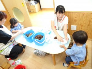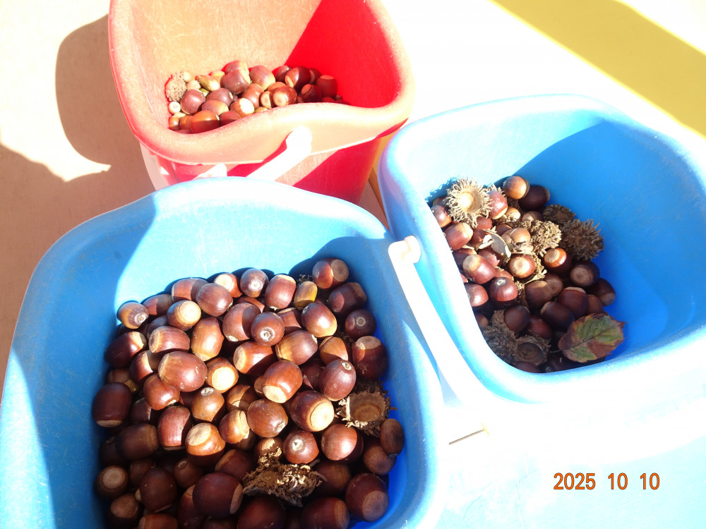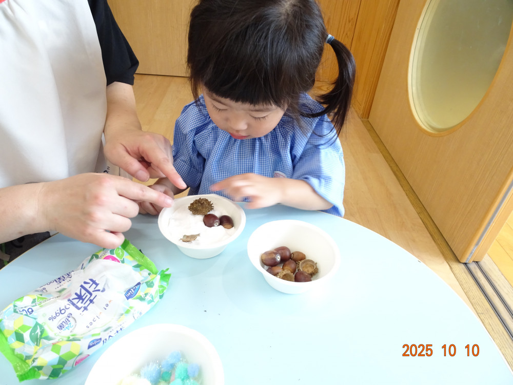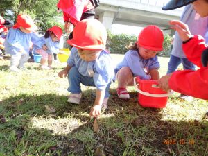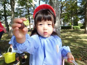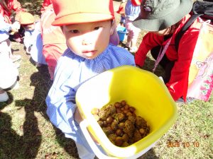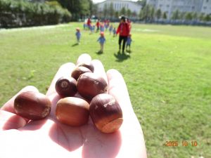 公園には色々な形(種類)のどんぐりがたくさん落ちていて、子どもたちはどんぐりを探しまわり、夢中になって拾っていました。