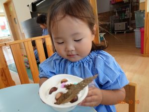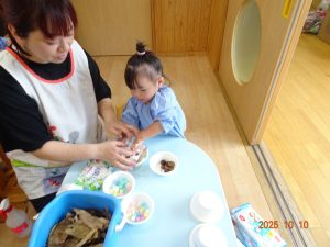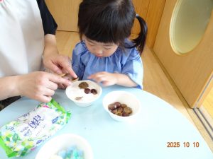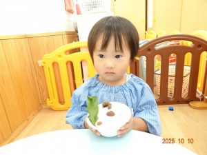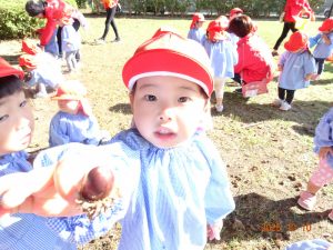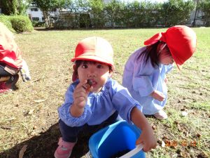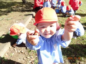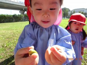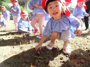 あらゆるものに興味津々な子どもたち。秋を体感したうめ組でした。