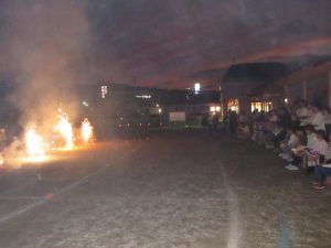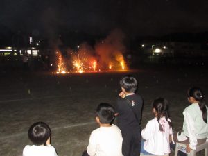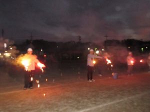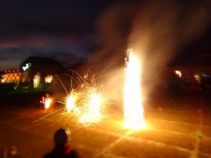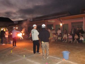 日没を待って、いよいよ園庭で花火大会の始まりです。