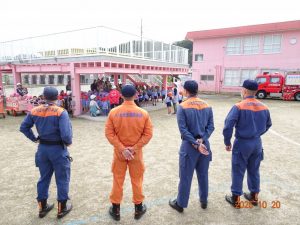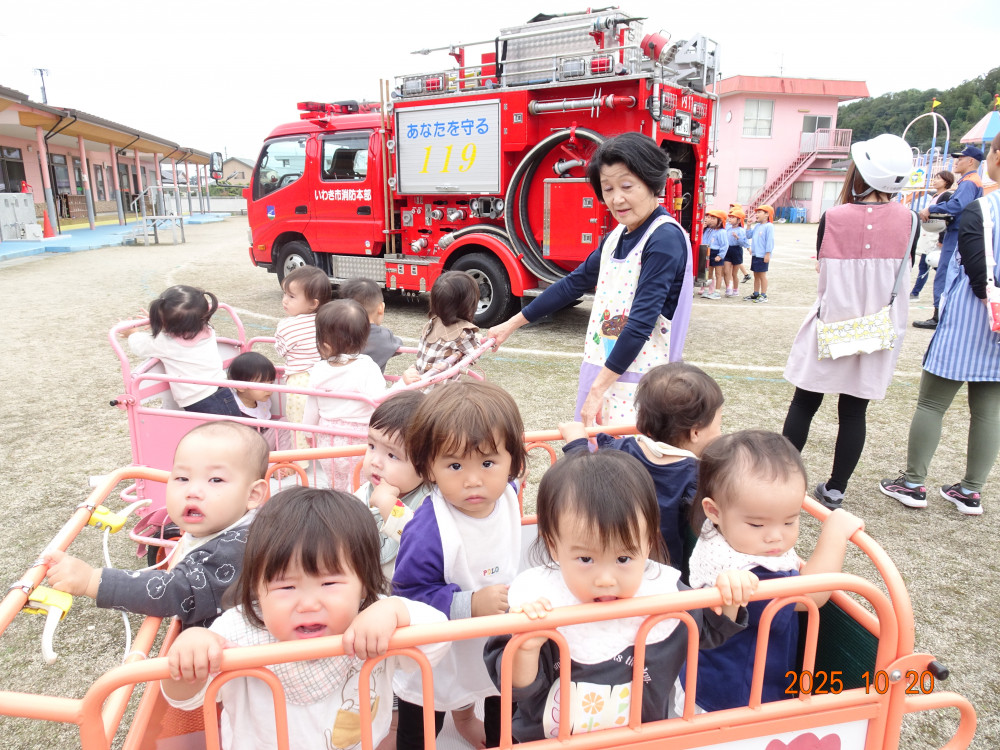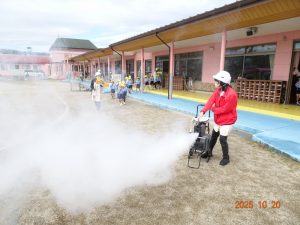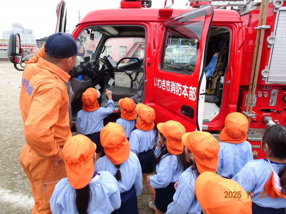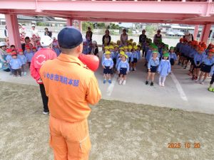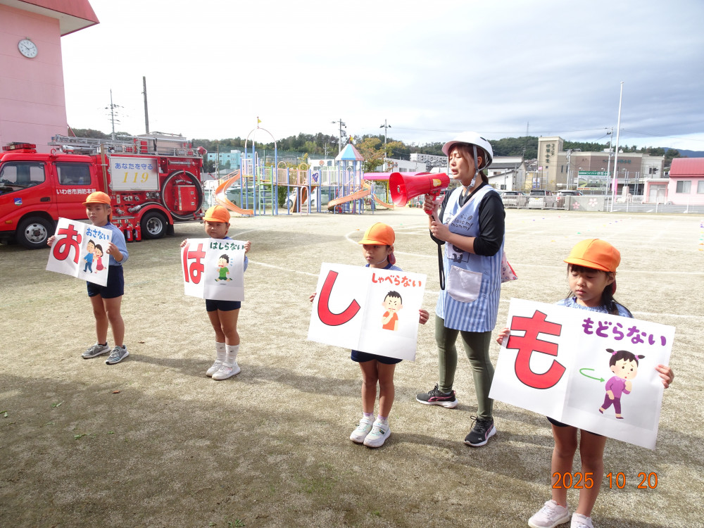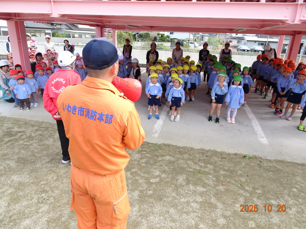 今月は本日、令和7年10月20日(月)に、いわき市内郷消防署の消防士さんをお呼びして、火災を想定した避難訓練の様子を見てもらい、監修していただきました。