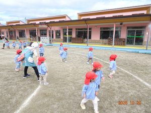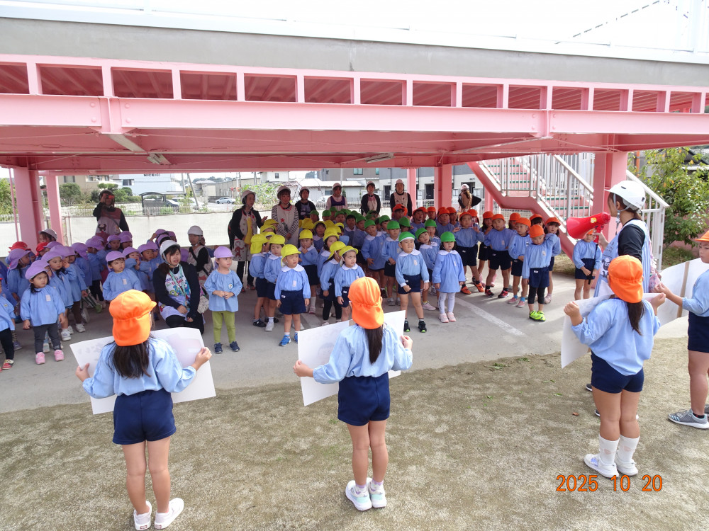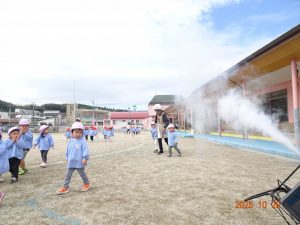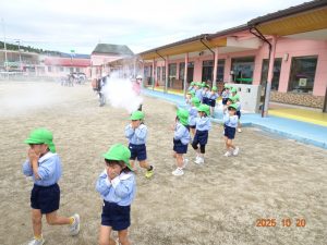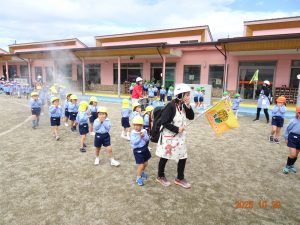 「給食室から火災が発生した」と館内放送で伝え、子どもたちは担任の先生の指示に従い迅速に園庭に避難しました。