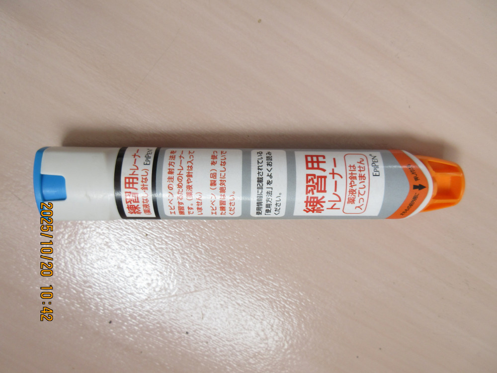 避難訓練終了後、お遊戯室にて、救急救命士さんの指導のもと「エピペン講習会」を開催していただきました。職員対象。