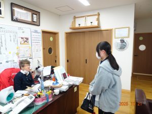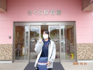 令和7年10月21日(火)、さくら保育園に高校2年生1名がインターンシップで来園しました。福島県双葉郡広野町の福島県立ふたば未来学園高等学校の生徒さんです。