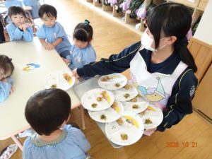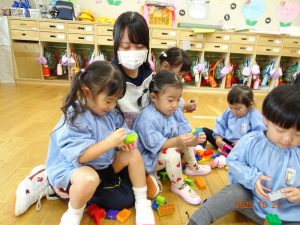 生徒さんには保育士のお手伝い(サポート)を頼みました。