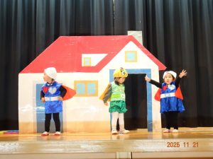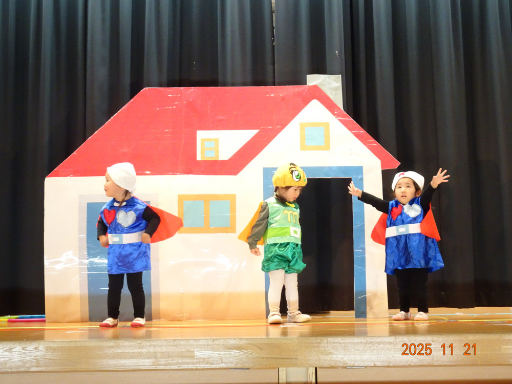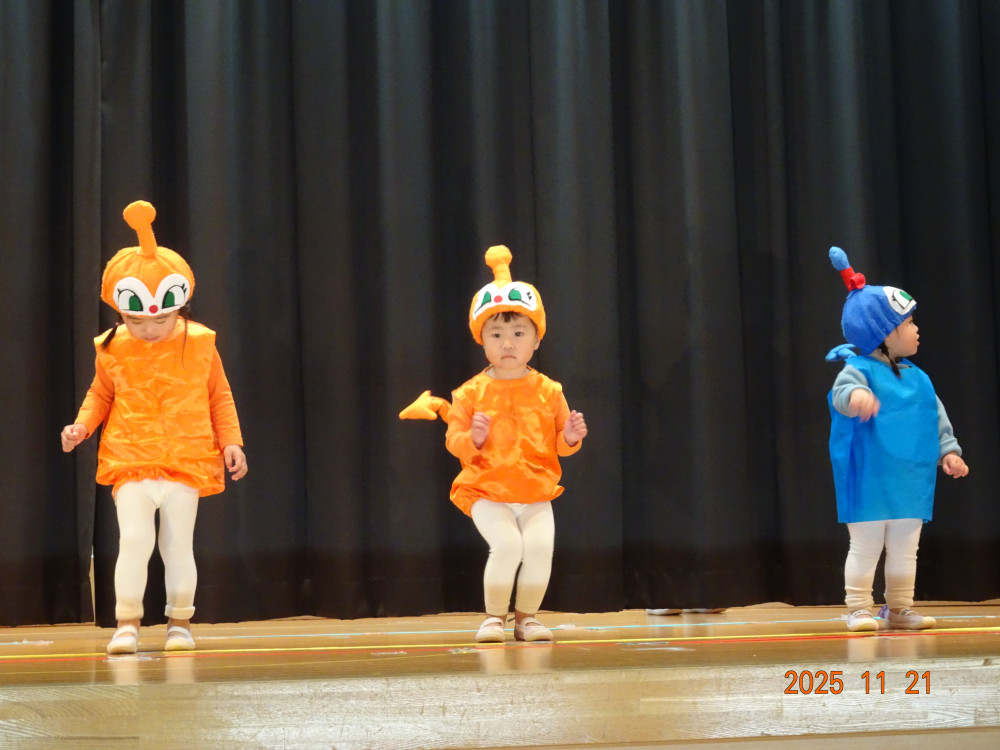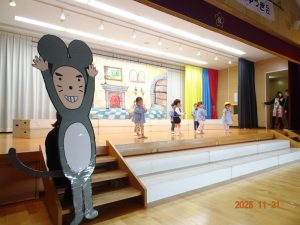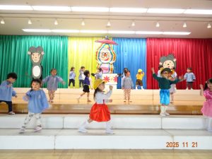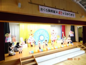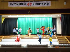 「さくら保育園第47回お遊戯会」本番まであと2週間となった本日、令和7年11月21日(金)は、演目およびタイムスケジュールを検証するため、全クラス合同で練習を行いました。