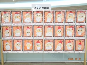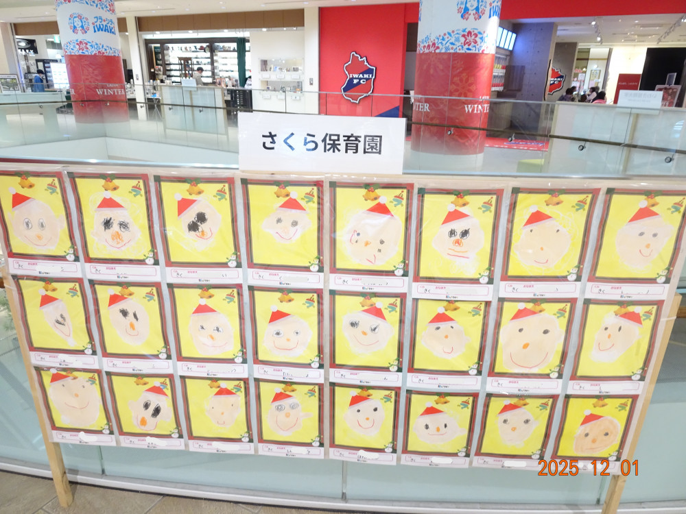 さくら保育園を含むいわき市内の保育園幼稚園の園児さんたちの作品が展示されています。さくら保育園では3歳児クラス以上(きく・ゆり・ひまわり組)の作品が展示。
