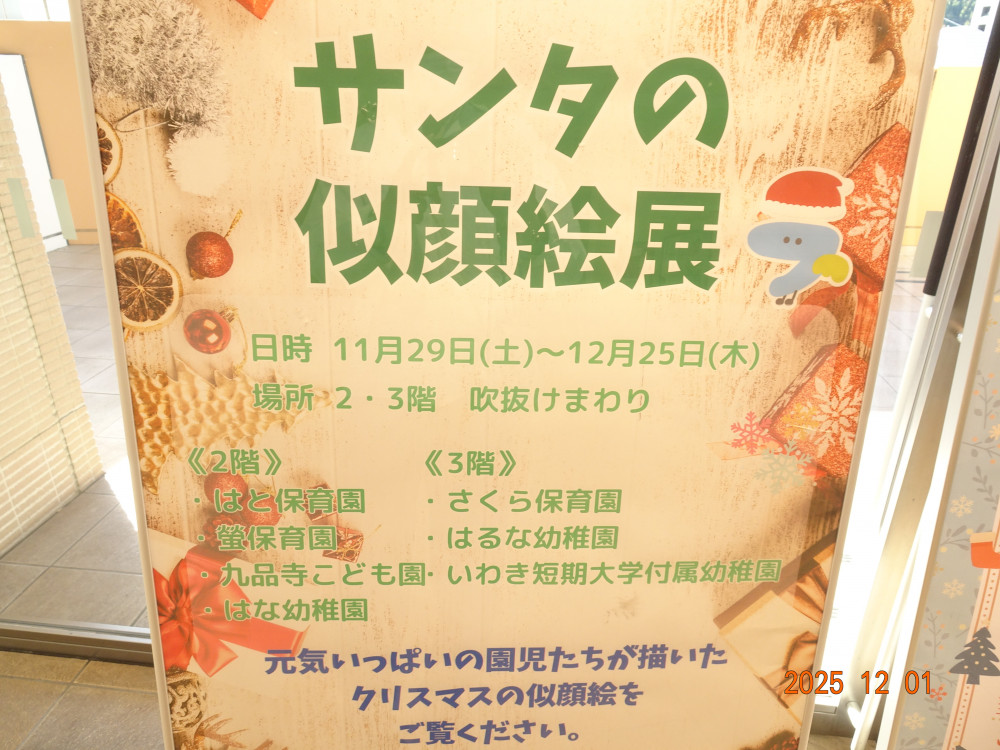 師走に入った本日、令和7年12月1日(月)、いわき駅前ビルLATOV(ラトブ)で開催されている「サンタの似顔絵展」を見に行ってきました。