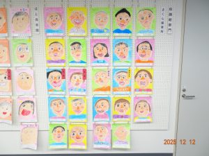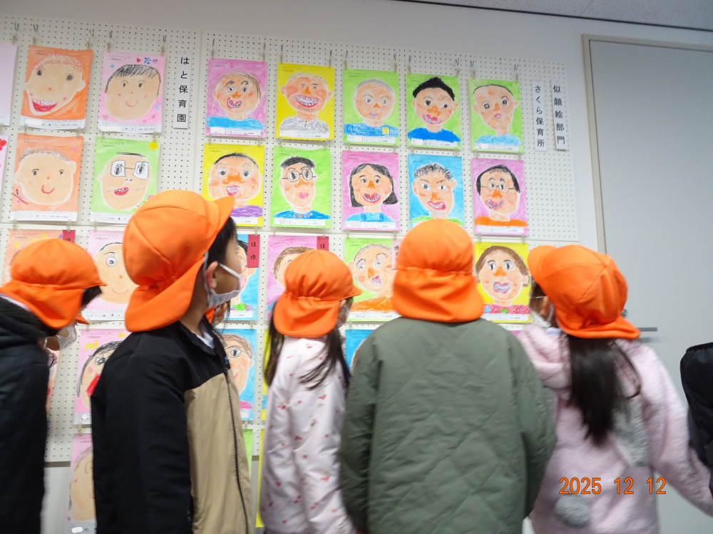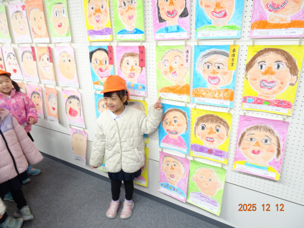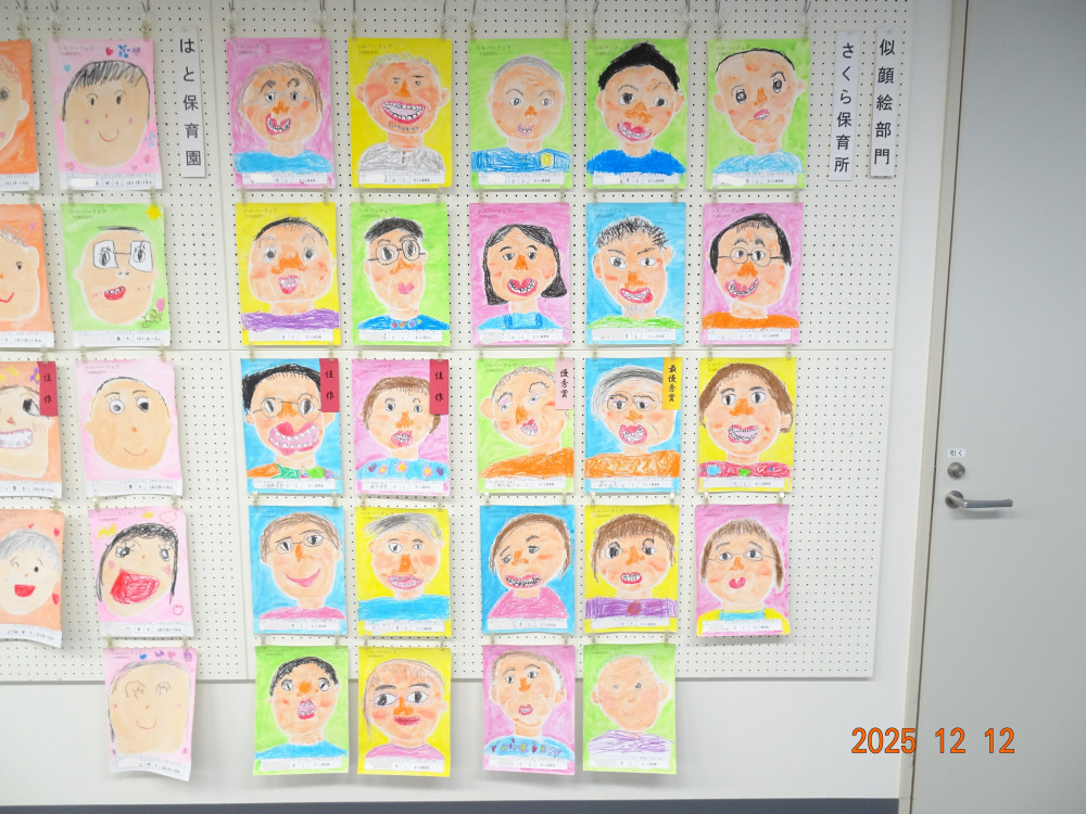 年長児5歳児クラスひまわり組が先月、「おじいちゃんおばあちゃんの似顔絵」を描いて、いわき市老人クラブ連合会主催「シルバーフェア2025創作展」に出品しました。