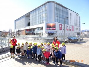 令和7年12月18日(木)、3歳児クラスきく組の園外活動で、いわき市平のいわき駅前ビルLATOV[ラトブ]に行ってきました。