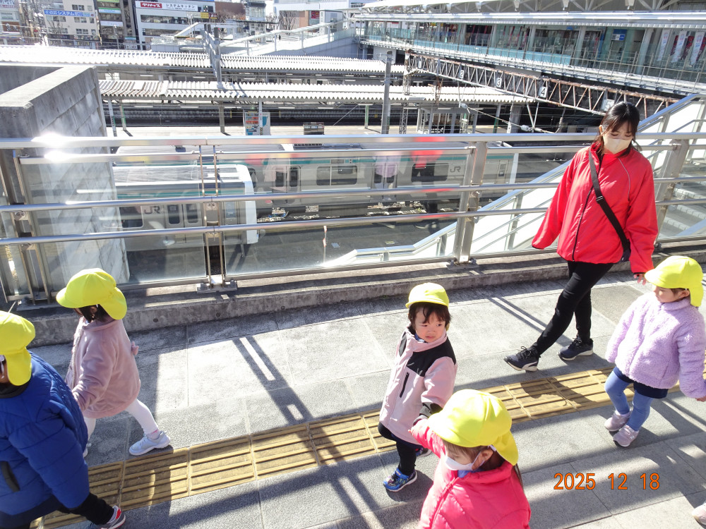 令和7年12月18日(木)、3歳児クラスきく組の園外活動で、いわき市平のいわき駅前ビルLATOV[ラトブ]に行ってきました。