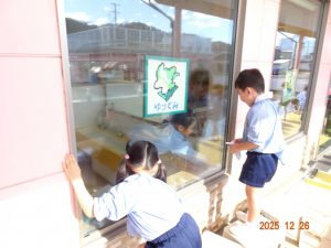 子どもたちは、お道具箱の整理や、普段使っているイスやロッカーや靴箱を雑巾がけし、窓拭きもしてくれました。