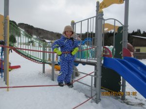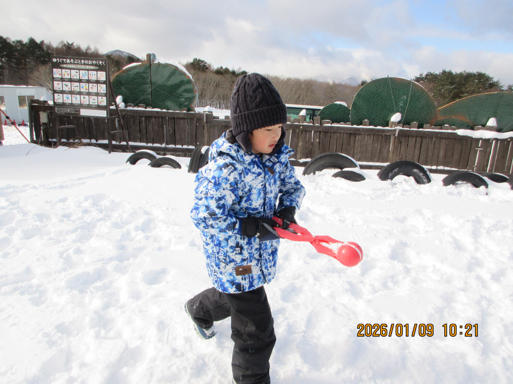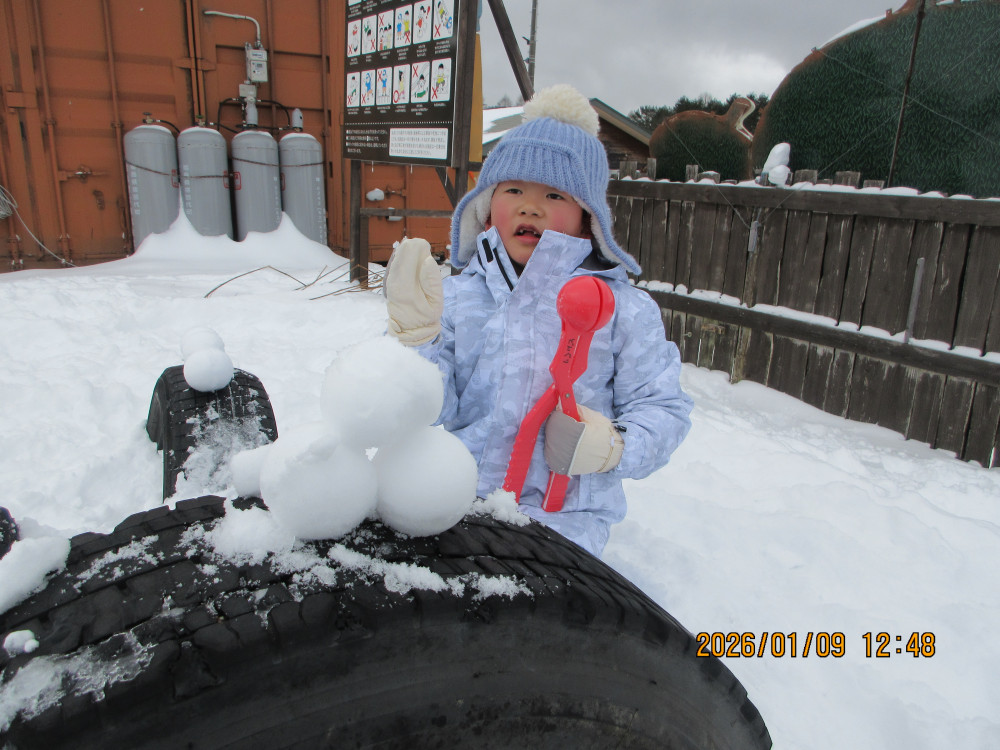 少し休憩して、午後からまたキッズパークに戻り、雪遊び後半戦。