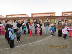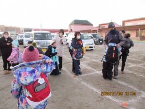 午後4時30分に保育園に到着すると、お父さんお母さんたちがお出迎えしてくれました。