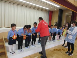 全クラス終了後に表彰式を行い、カードをたくさん取った子たちにはご褒美のメダルが授与されました。
