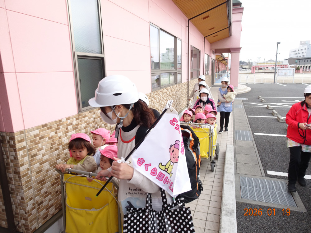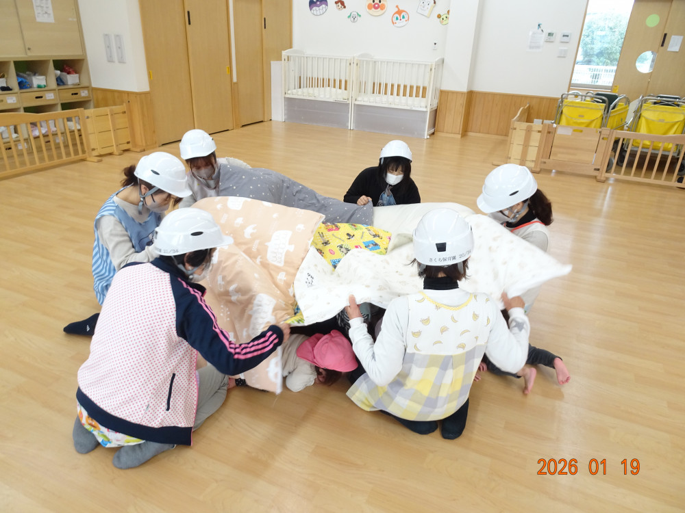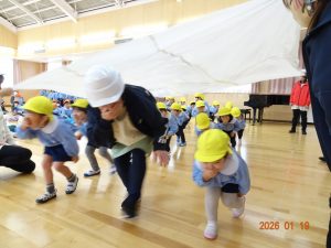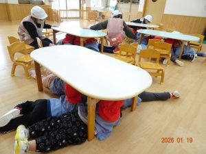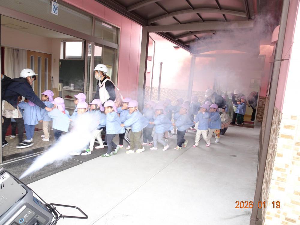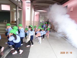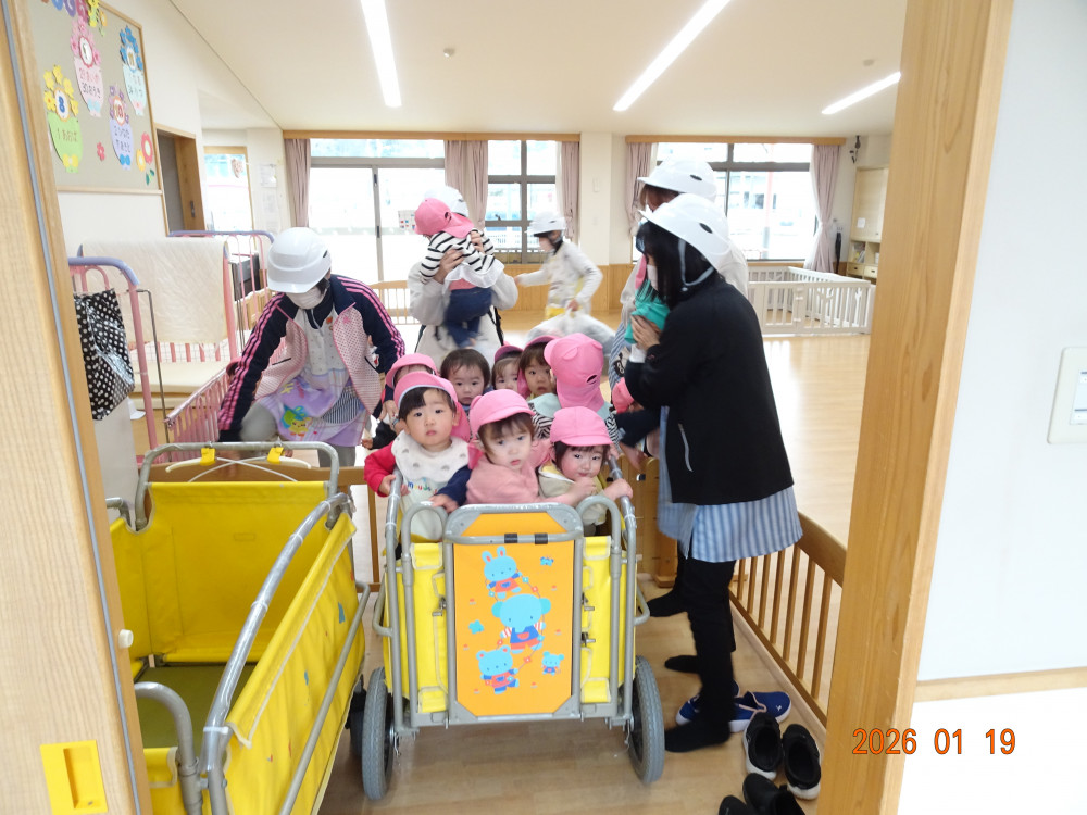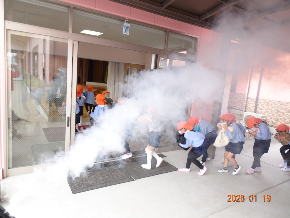 毎月一回実施している避難訓練。今月1月の災害のテーマは「地震火災」です。本日、令和8年1月19日(月)に実施しました。