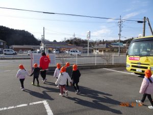 本日、令和8年1月27日(火)、5歳児クラスひまわり組がそれを見学するため歩いて行きました。