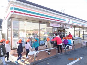 地域交流の一環として協力させていただいた「節分の塗り絵」。セブンイレブンのスタッフさんたちも子どもたちの訪問にたいへん喜んでくださいました。