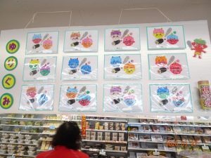 お店の中に入ると、子どもたちは自分の塗り絵を見つけ出し、とても嬉しそうでした。