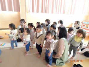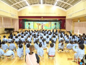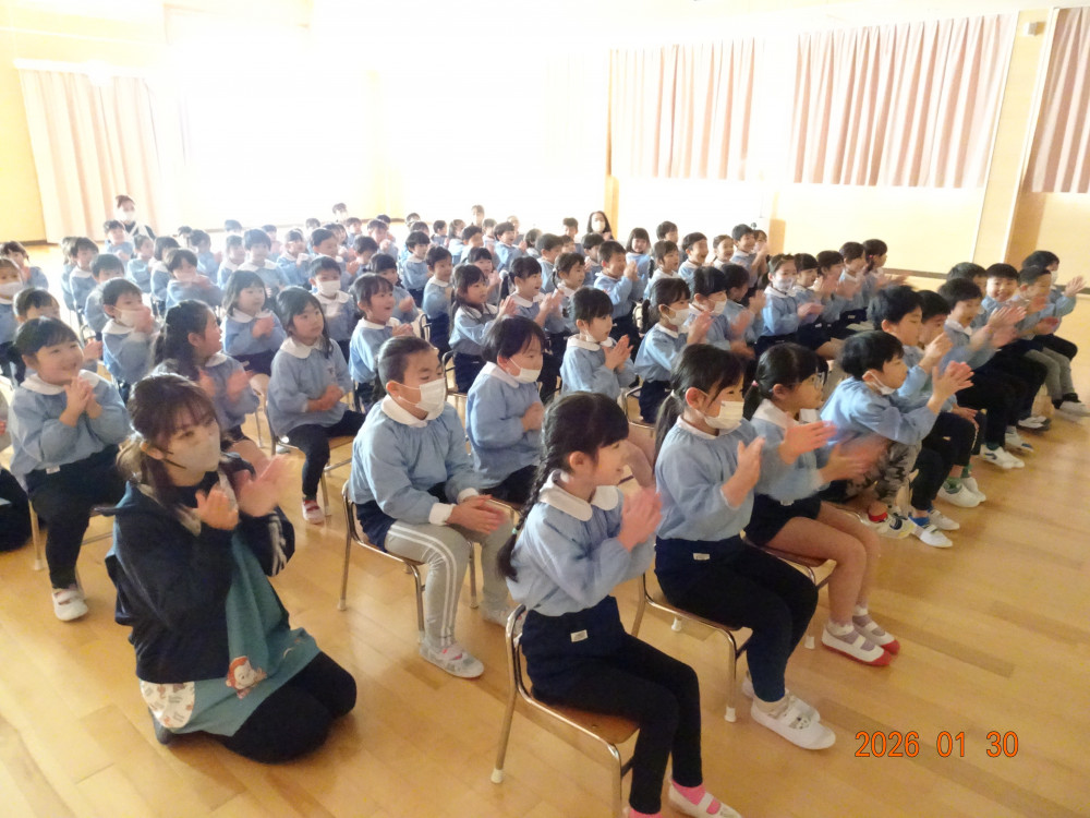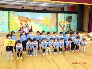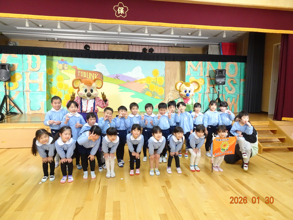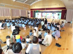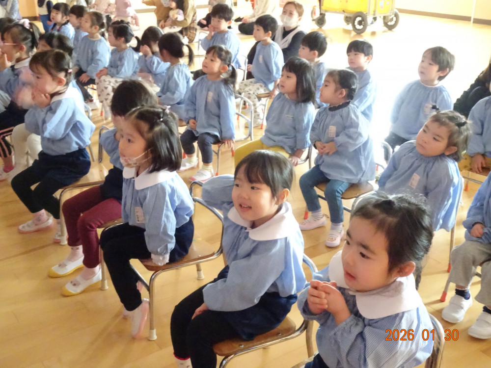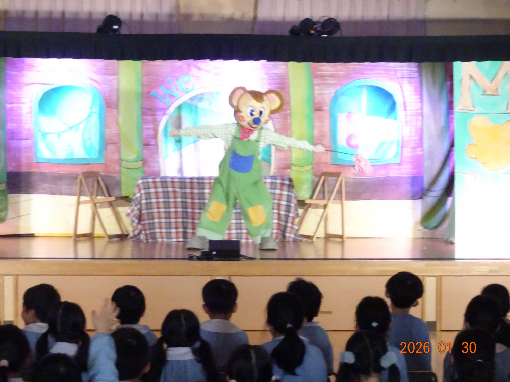 令和8年1月30日(金)、東京より「劇団バク」さんをさくら保育園にお招きして、お遊戯室にて、着ぐるみ人形劇「田舎のねずみと都会のねずみ」を上演していただきました。
