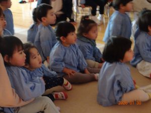子どもたちは行儀良く座って観劇し、真剣な表情で眺めたり、大笑いしたりと