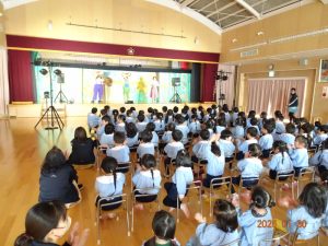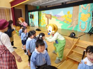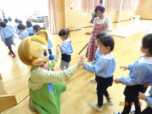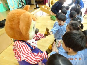 人形劇終了後は、記念撮影をさせてもらい、子どもたち一人ひとりとハイタッチやバイバイをしていただきお別れしました。