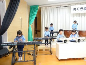 年中児になると様々な楽器を扱い、すばらしいハーモニーを奏でていました。