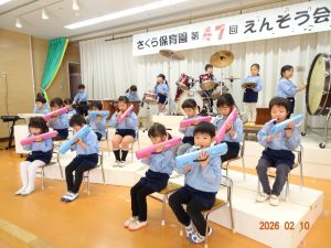 「さくら保育園第47回演奏会」(令和8年2月28日(土)開催)まで、あと18日。各クラス、練習にも熱が入ってきました。