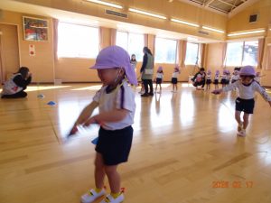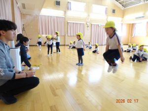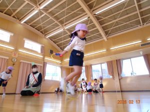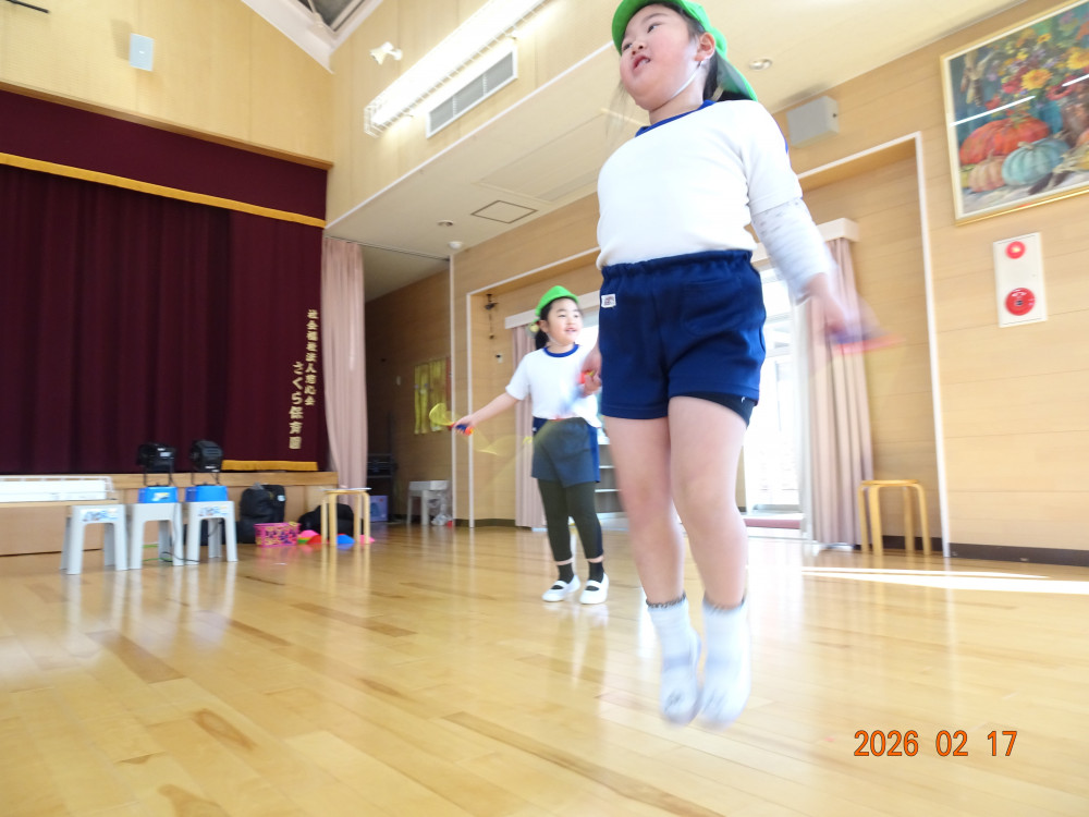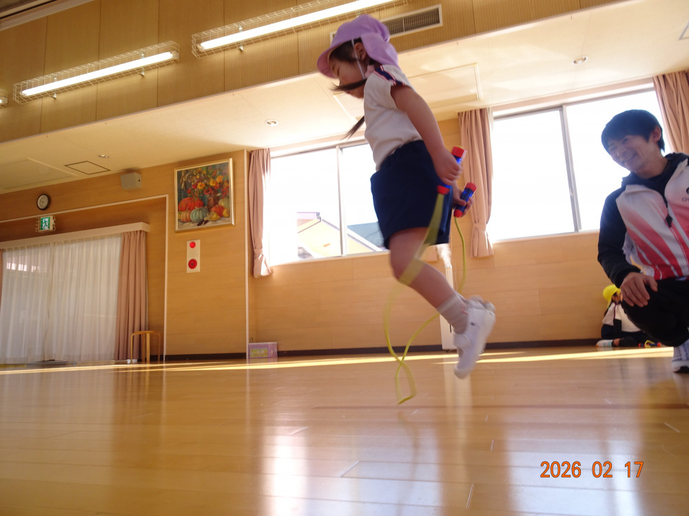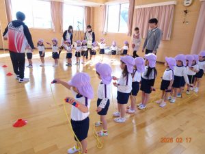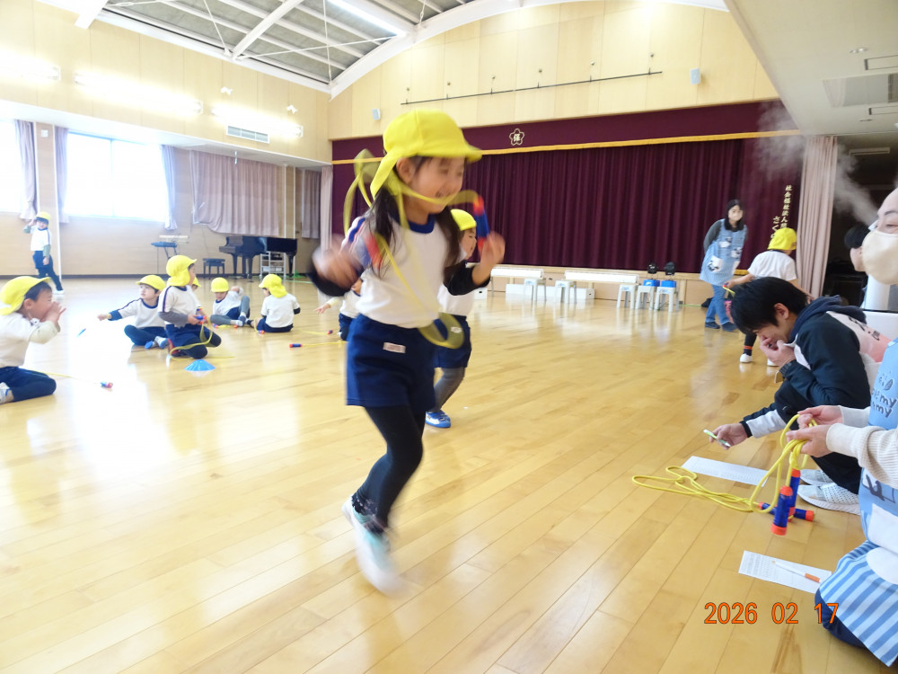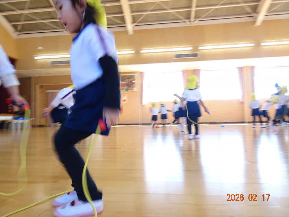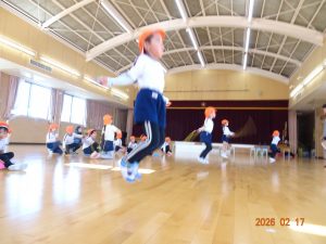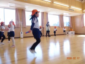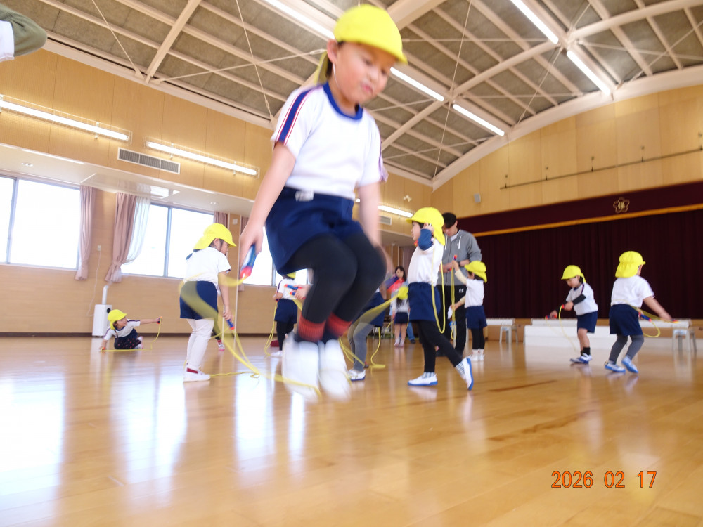 令和8年2月17日(火)、2歳児クラス以上対象の「なわとび大会」をお遊戯室で実施しました。