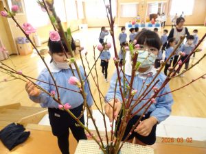 最後に「桃の花」を花瓶に生けてひなまつりの準備はOK