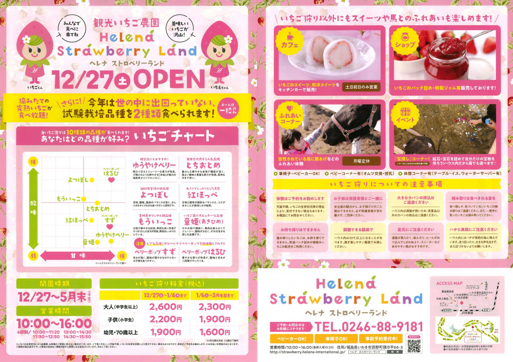 場所は、いわき市添野町でゴルフ場や乗馬クラブなどを経営している「ヘレナ・インターナショナル」さんの観光いちご農園「ヘレナストロベリーランド」です。