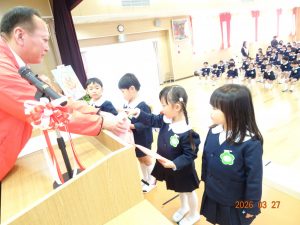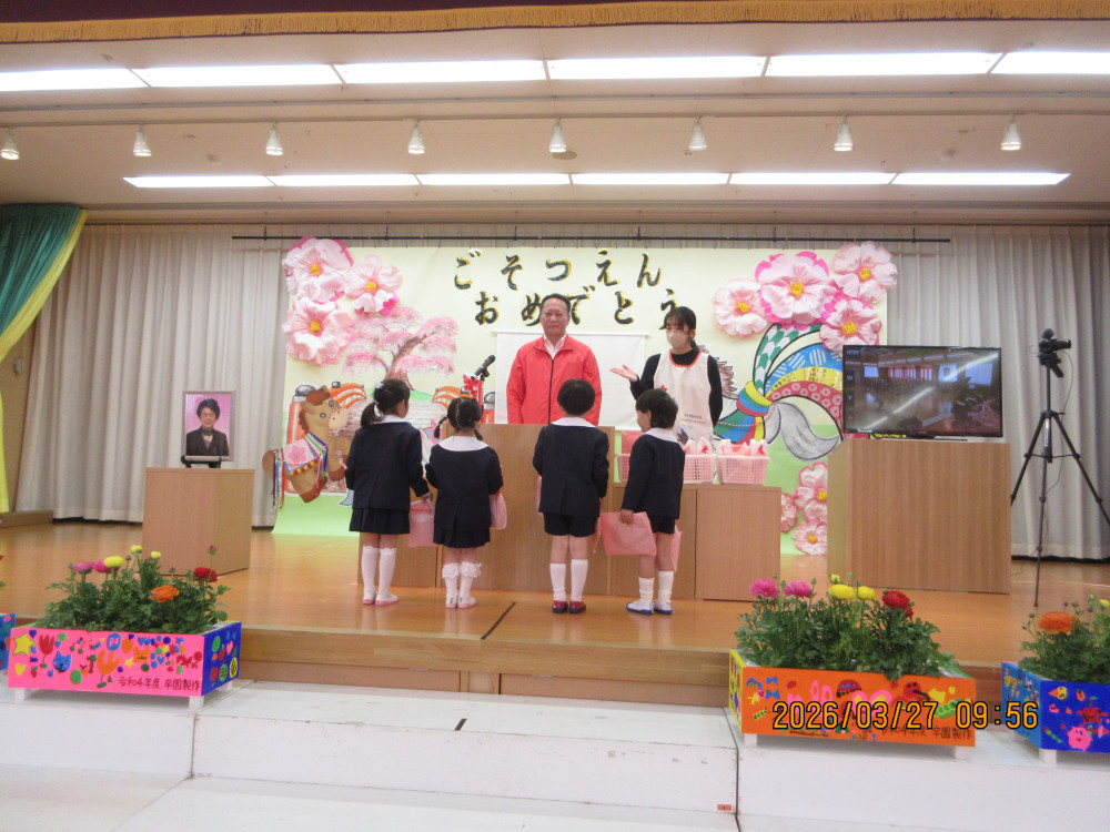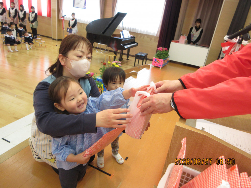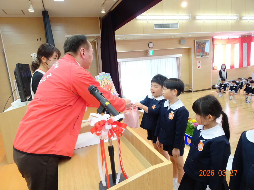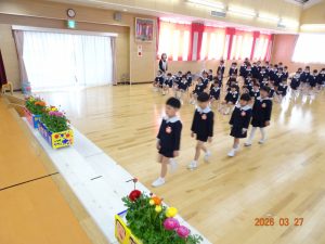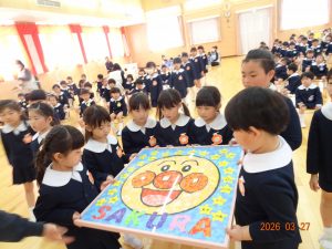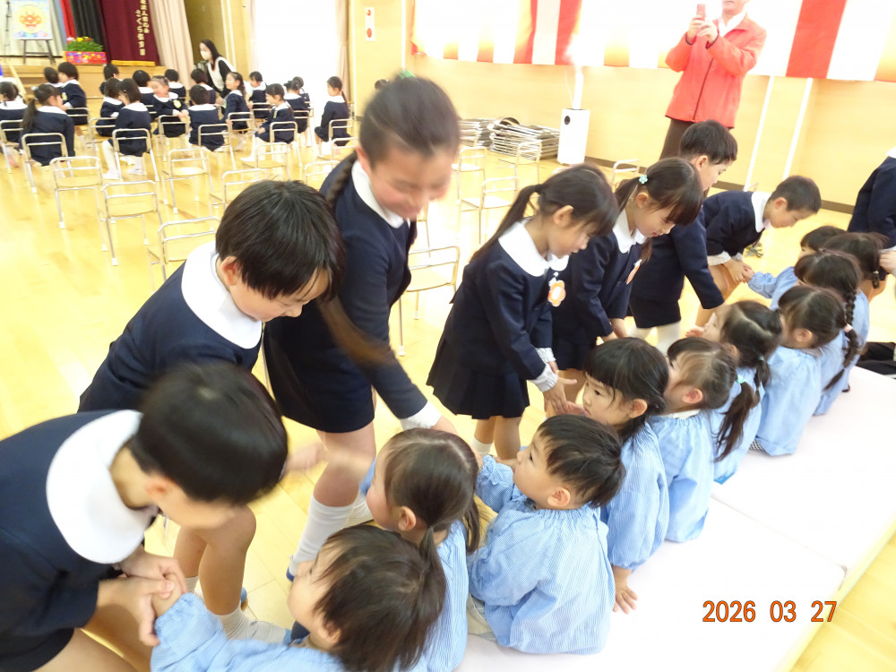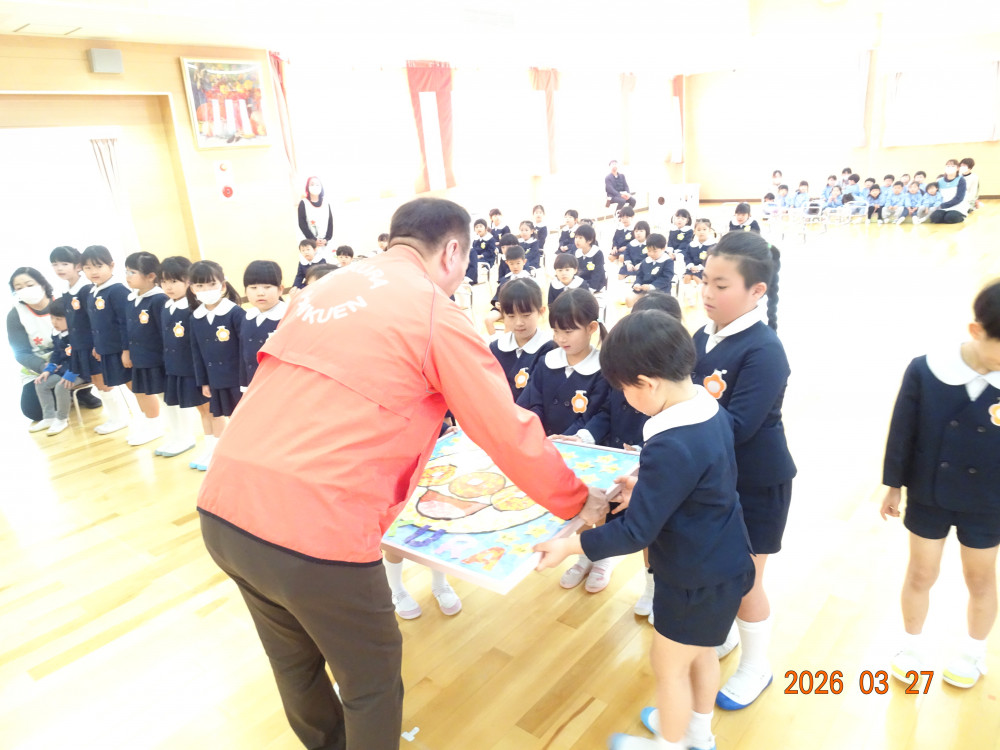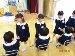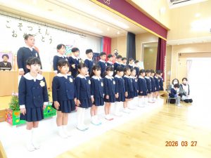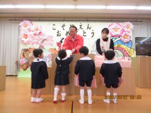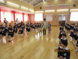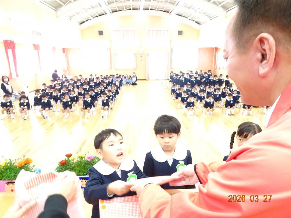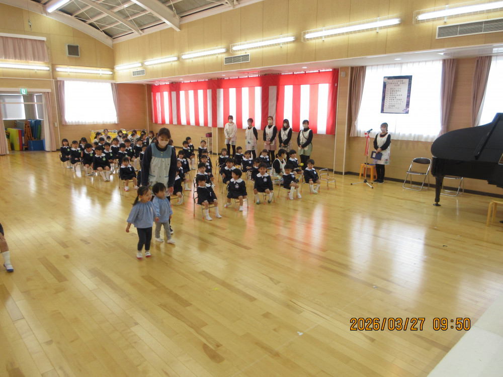 園長先生から「一年間よく頑張りました。4月からも頑張ってください!」との言葉に、みんなで元気に「はい!」と答え、進級・進学への意気込みを感じました。