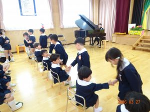最後に、ひまわり組が後輩たち一人ひとりと握手をして終業式を終えました。