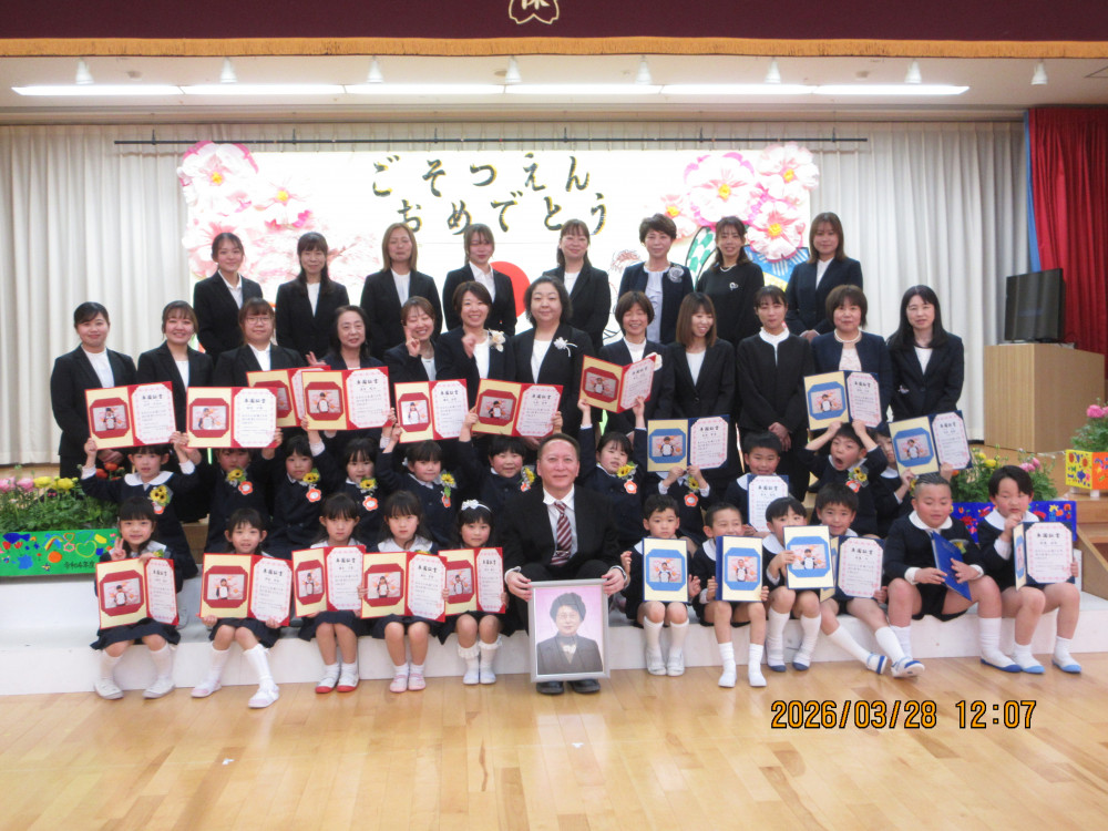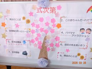 実際の卒園の日は年度末の3月31日ですが、さくら保育園では式のみ前倒しで本日、令和8年3月28日(土)に「令和7年度卒園式」を卒園生ひまわり組24名とその保護者様のみの参加で執り行いました。
