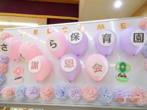 卒園式終了後に、ひまわり組保護者様主催による「謝恩会」を開催していただきました。