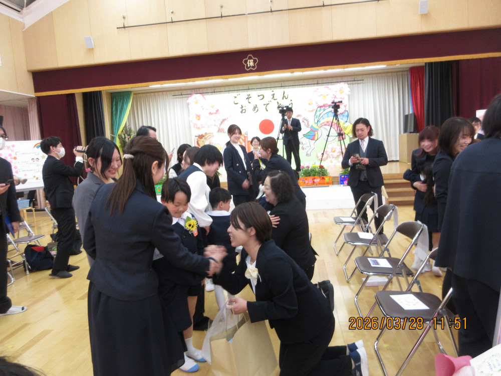 最後は、親子で手をつないで会場を退出し、職員一同で盛大な拍手でお見送りしました。