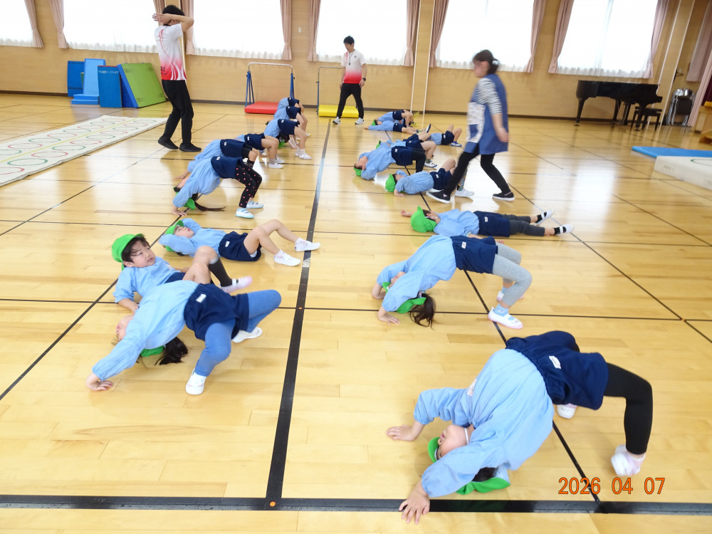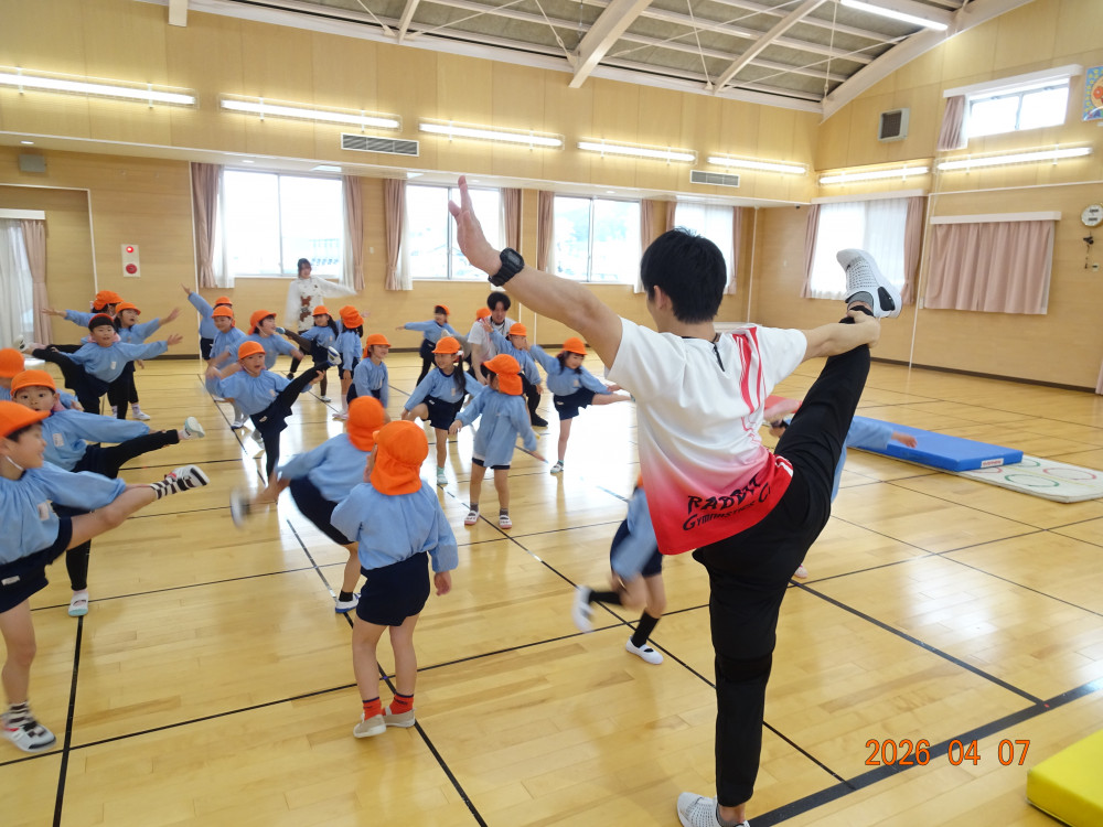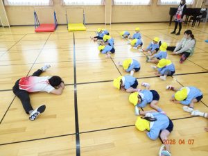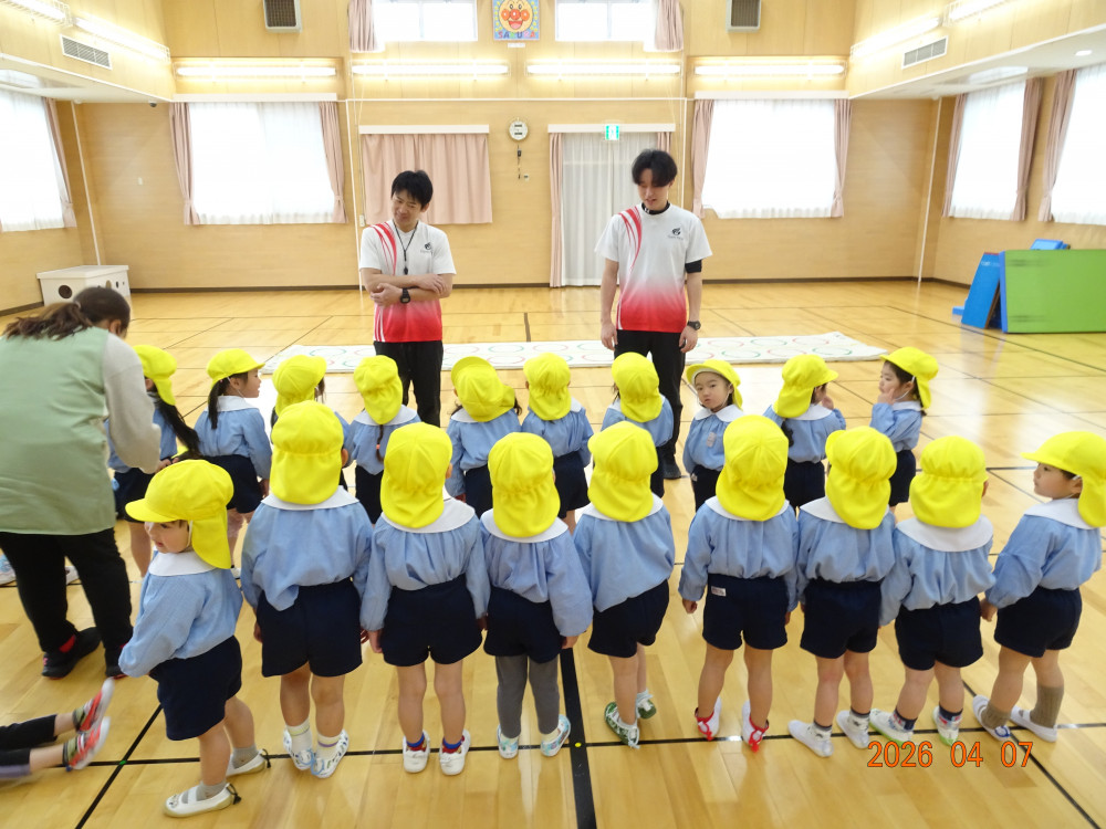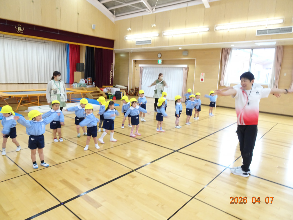 今年度は本日、令和8年4月7日(火)より3歳児クラス以上(きく・ゆり・ひまわり組)の体操教室をスタートしました。
