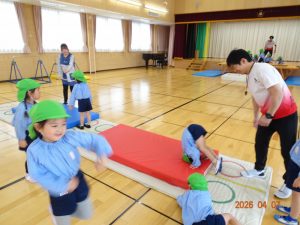 尚、2歳児クラスすみれ組の体操教室は来月5月からスタートする予定です。