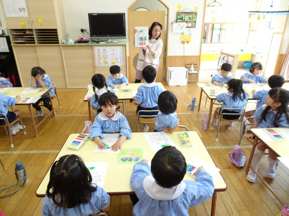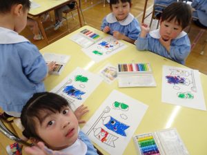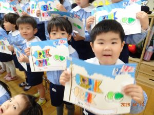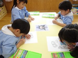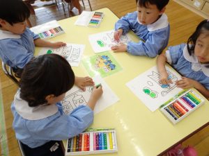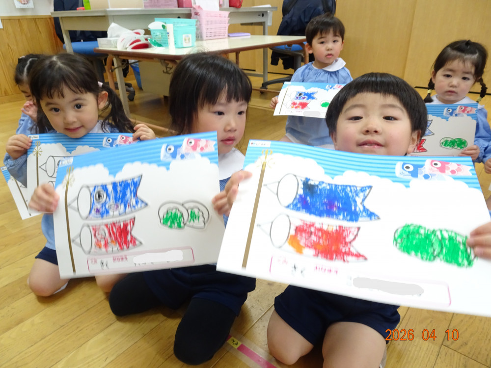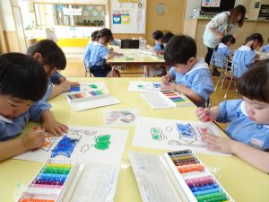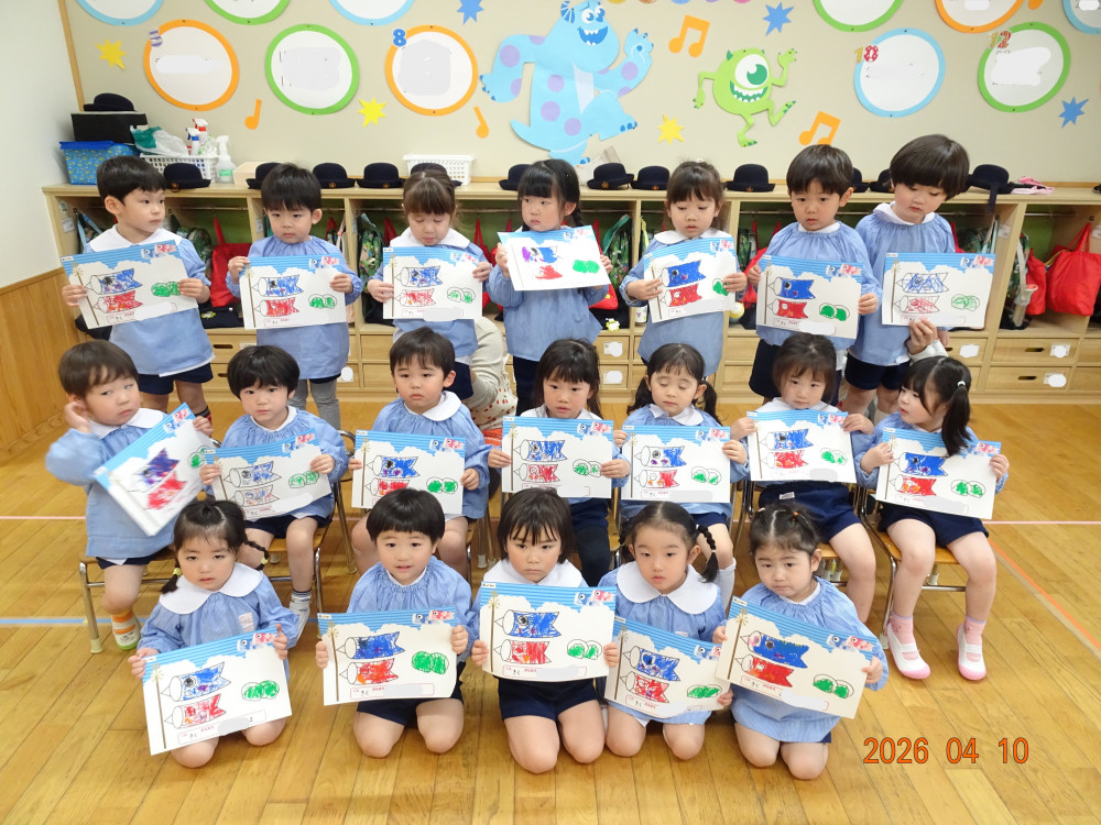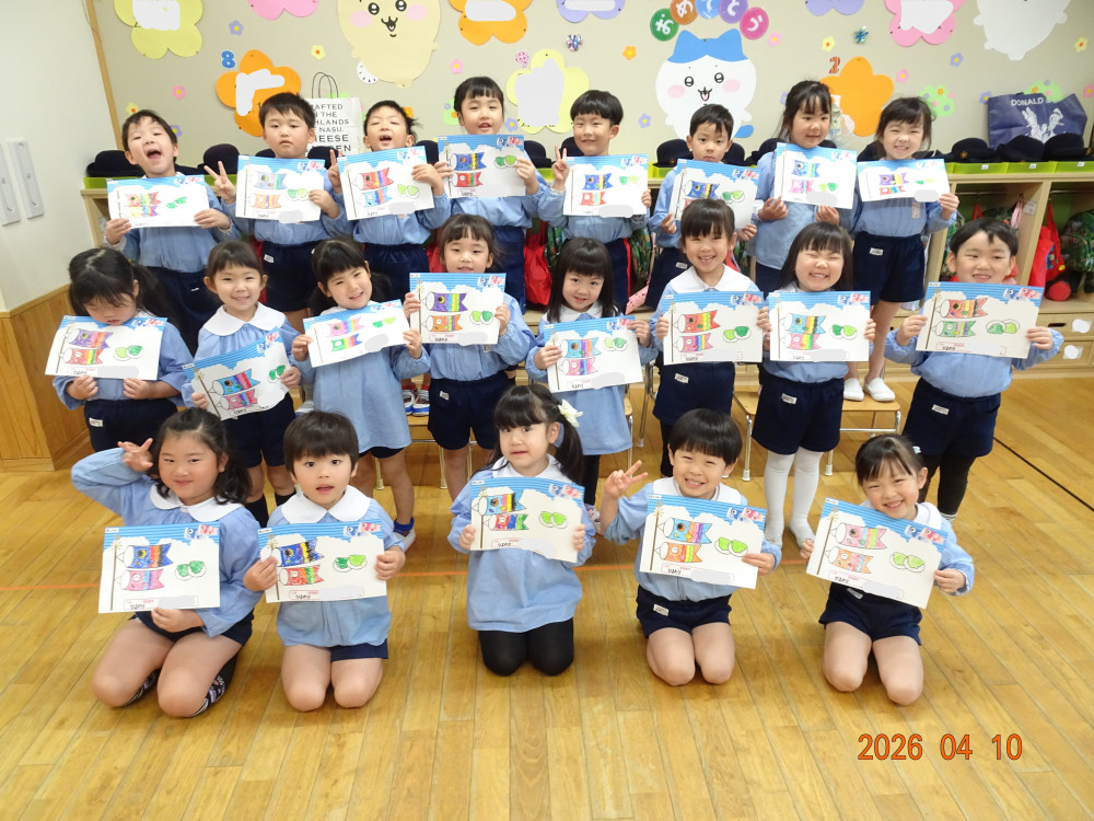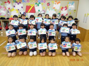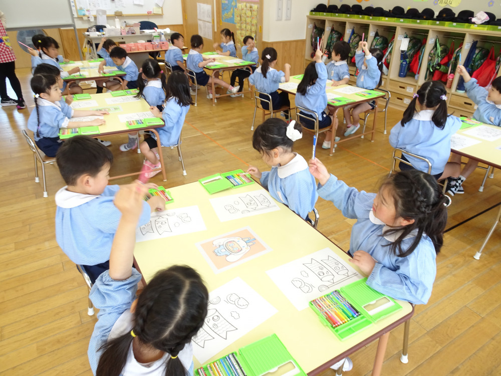 専用用紙をいただきましたので、3歳児クラス以上(きく・ゆり・ひまわり組)に製作してもらいました。