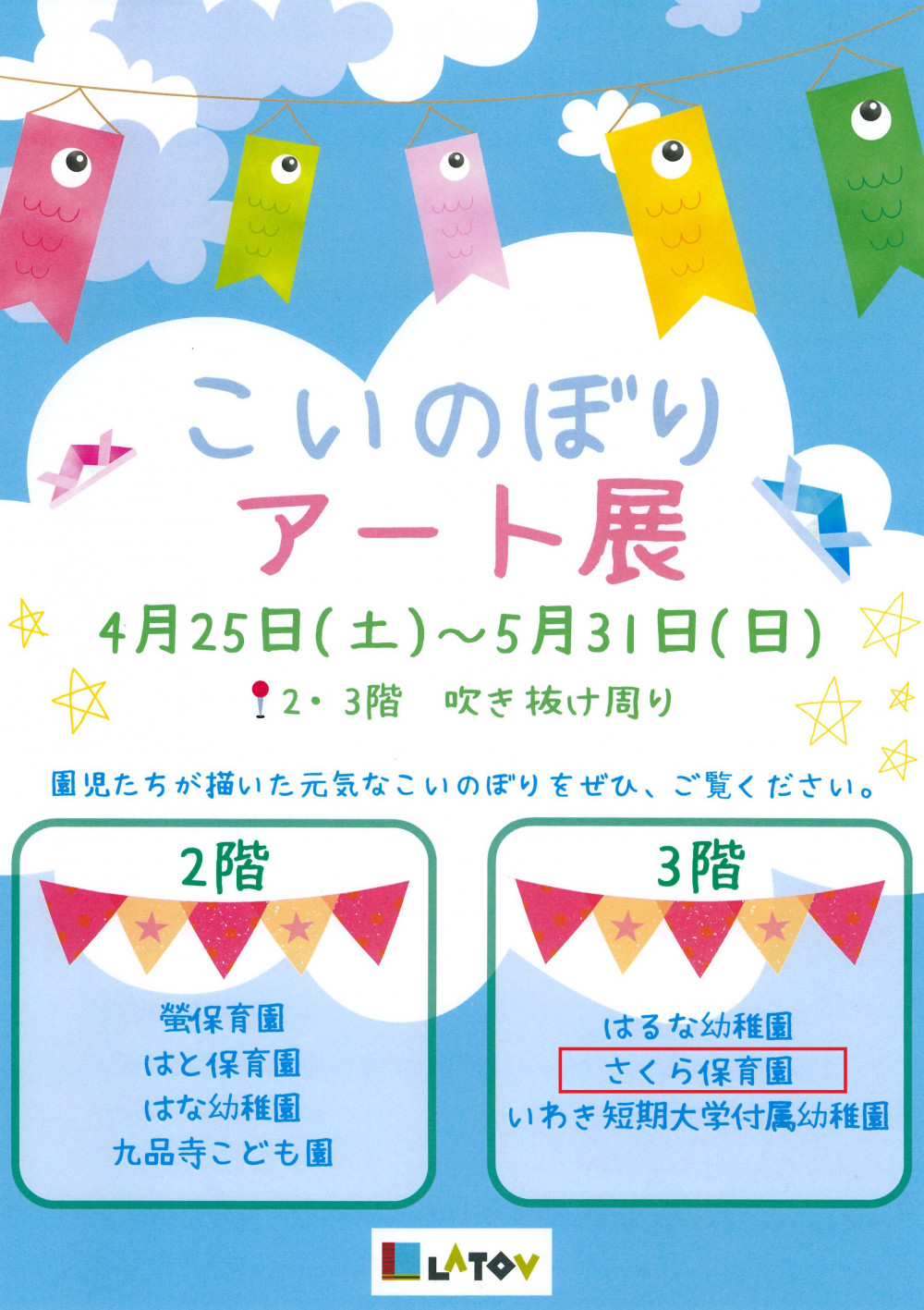 いわき駅前ビルLATOV(ラトブ)さんより、この度、さくら保育園に「こいのぼり」の作品の出品依頼がきました。