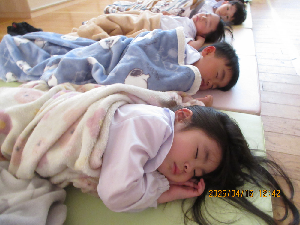 本日の午睡のスナップ写真を【在園児専用ページ】にアップしましたので、ご覧ください。