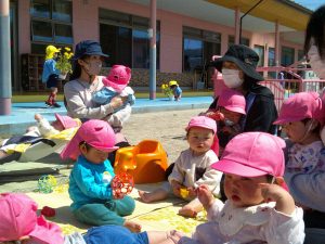 今後もお天気の良い日は外気浴や戸外遊びをしていきたいと思います。