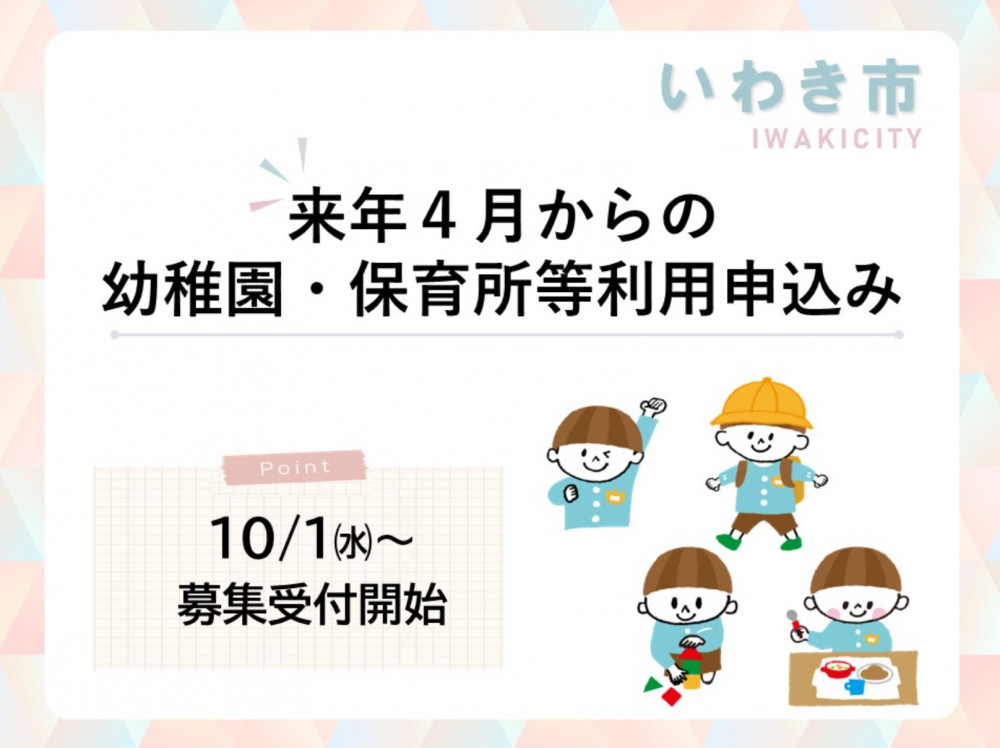 先月もお知らせしましたが、本日、令和7年10月1日(水)より来年度令和8年4月の入園申し込みの受け付けが、いわき市の各地区の保健福祉センターで始まりました。
