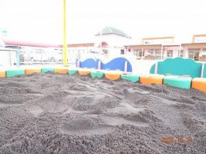 子どもたちが砂場で遊ぶと日に日に砂が減っていくので定期的に補充しています。