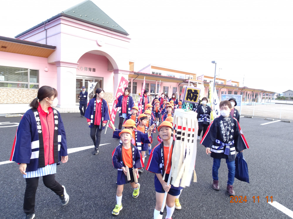 この度、さくら保育園があるいわき市好間町を管轄している「いわき市内郷消防署」より、その運動の一環として令和7年11月13日(木)にさくら保育園の子どもたち(さくら保育園幼年消防クラブ)に防火パレードおよび広報活動をしてほしいとのご依頼をいただき、喜んでお引き受けしました。