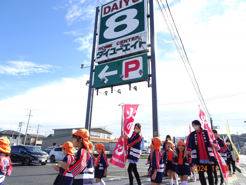 さくら保育園を出発して、JA新鮮やさい館好間店を経由し、ダイユーエイトいわき好間店まで防火パレードをする計画です。