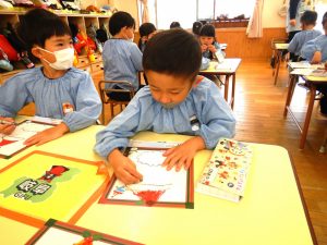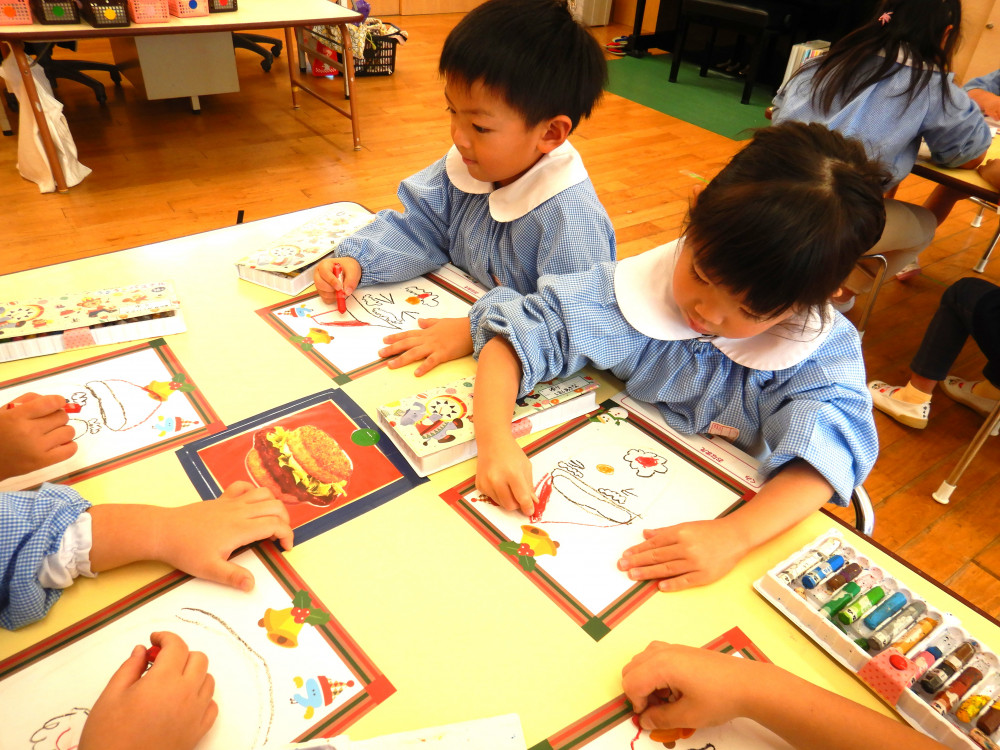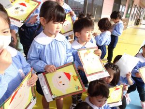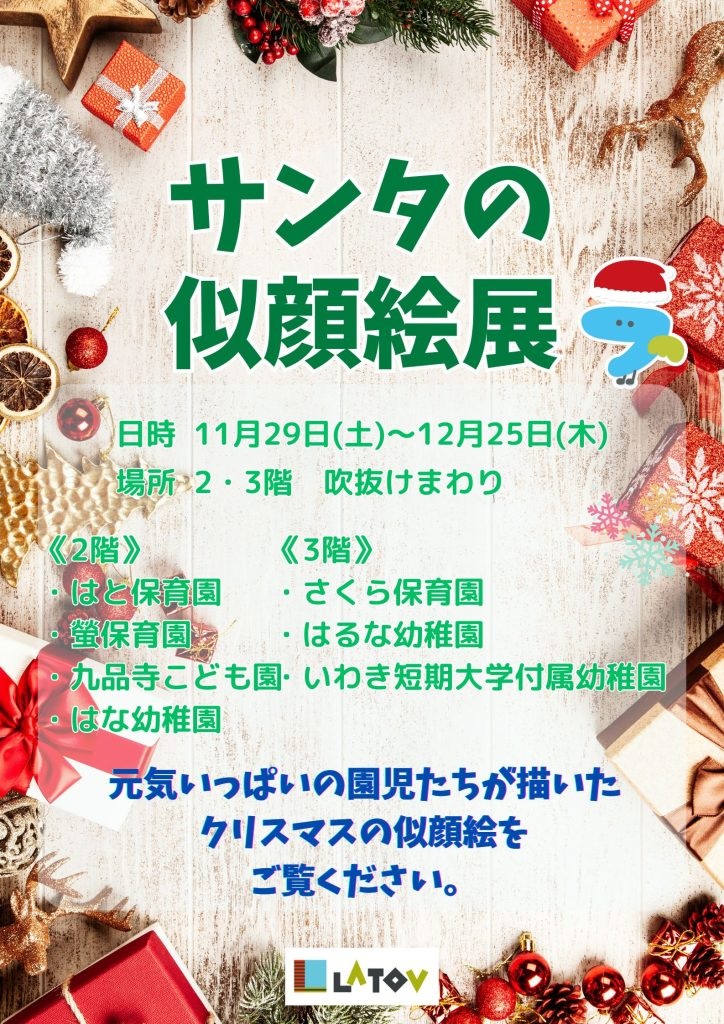 この度、いわき駅前再開発ビルLATOV[ラトブ]さんより「サンタの似顔絵」を描いてほしいとのご依頼をいただきまして、3歳児クラス以上(きく・ゆり・ひまわり組)の子どもたちがサンタさんのお顔🎅を描きました。